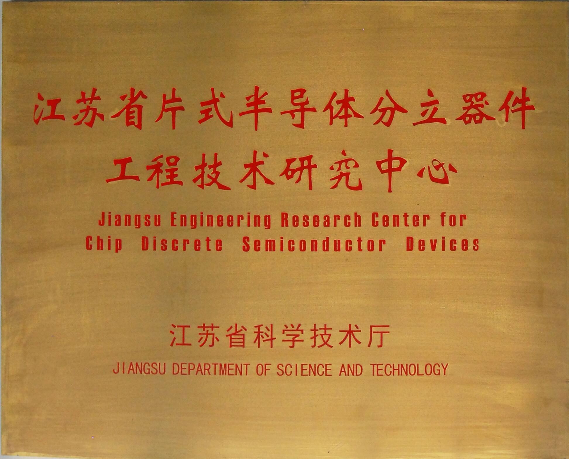 获江苏省片式半导体分立器件工程技术研究中心奖牌