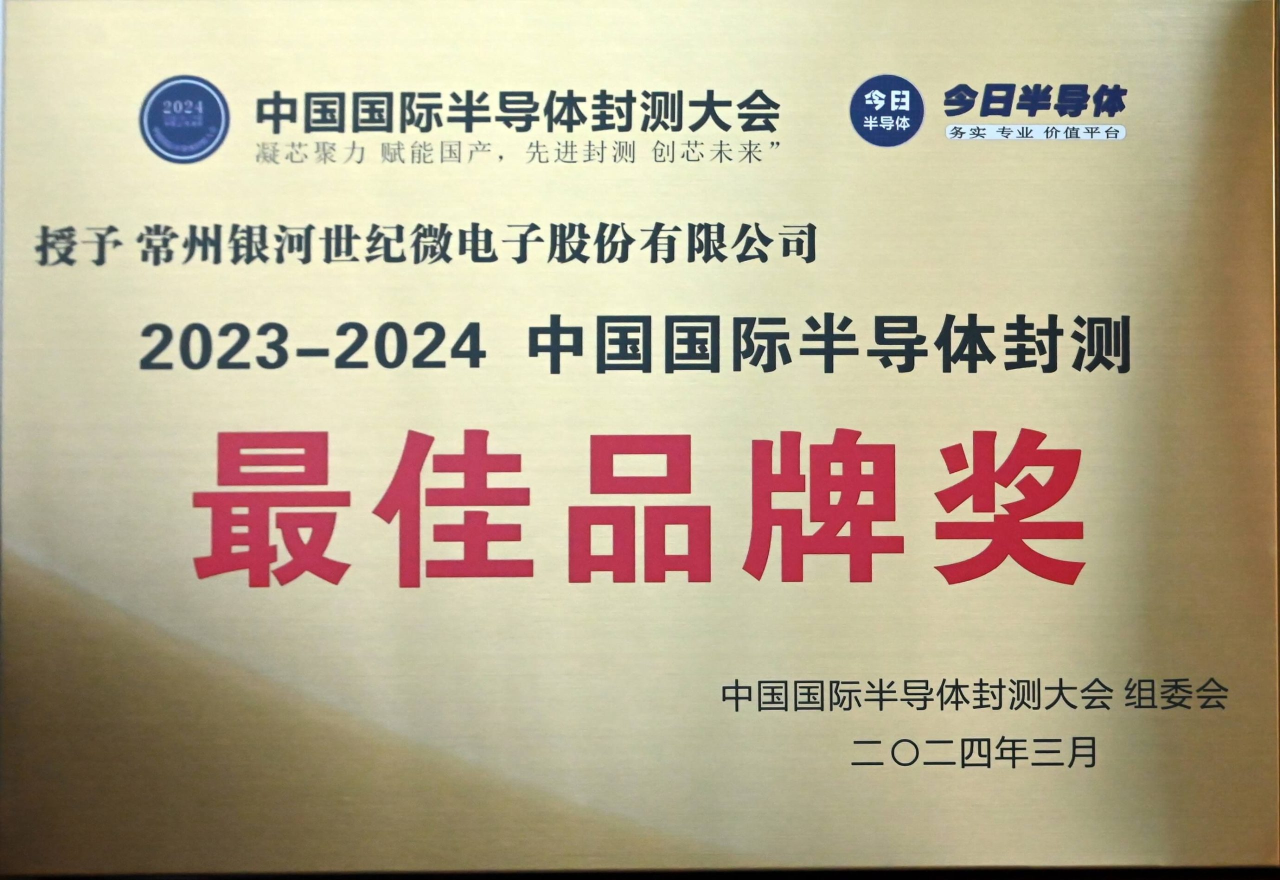 获2023-2024中国国际半导体封测“最佳品牌奖”